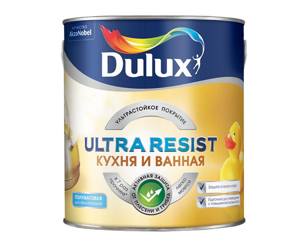 Полуматовая краска для помещений с повышенной влажностью или эксплуатационной нагрузкой, таких как кухни, ванные комнаты, санузлы. Особо прочная, содержит воск, что позволяет легко очищать окрашенную поверхность. В состав краски входят специальные добавки, предотвращающие рост плесени и грибка
