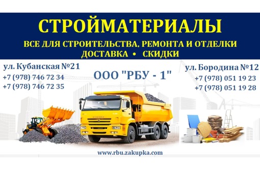 ООО «РБУ-1» занимается реализацией и доставкой качественных строительных материалов в Крыму и Симферополе по очень приятным ценам!