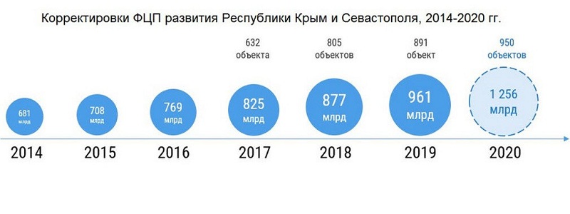 В 2015 году объем ФЦП развития Крыма был утвержден на уровне 708 млрд рублей