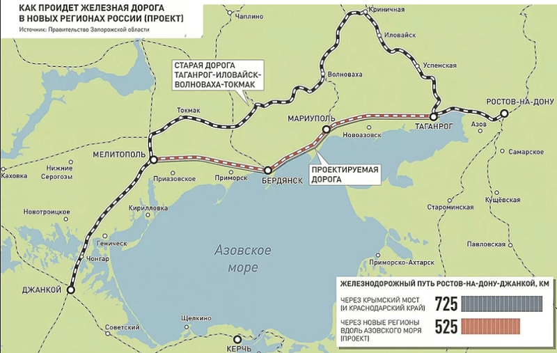 6.11.2023 губернатор Запорожской области Евгений Балицкий сообщил о начале строительства железной дороги, которая соединит Ростов-на-Дону с Крымом и пройдет по территории Запорожской области.